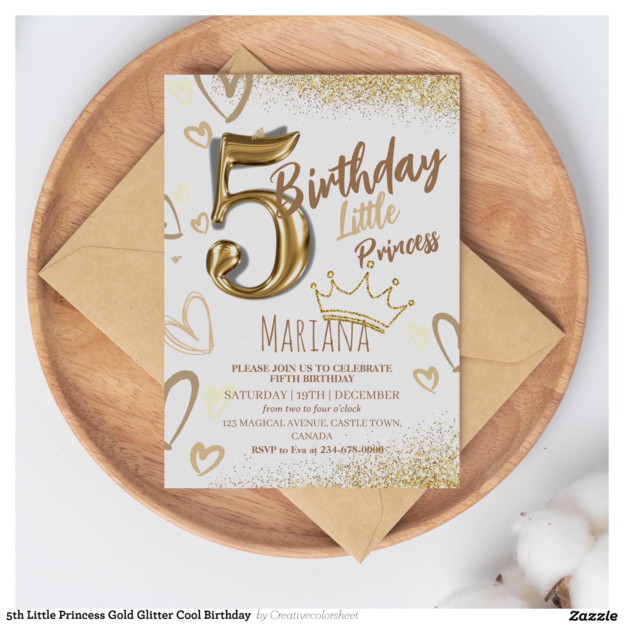 5th Little Princess Gold Glitter Cool Birthday Invitation