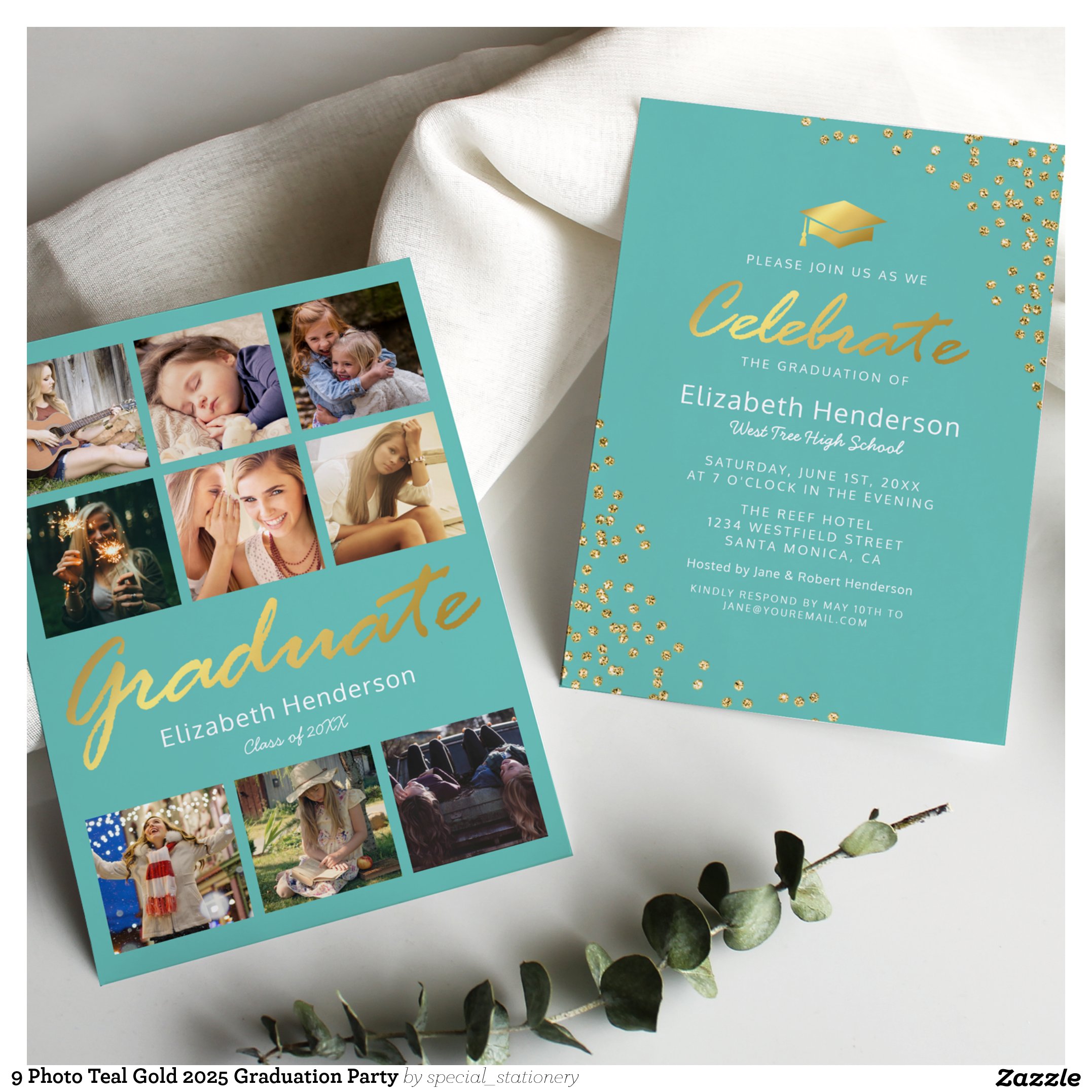 Be the first to review “9 Photo Teal Gold 2025 Graduation Party Invitation”
