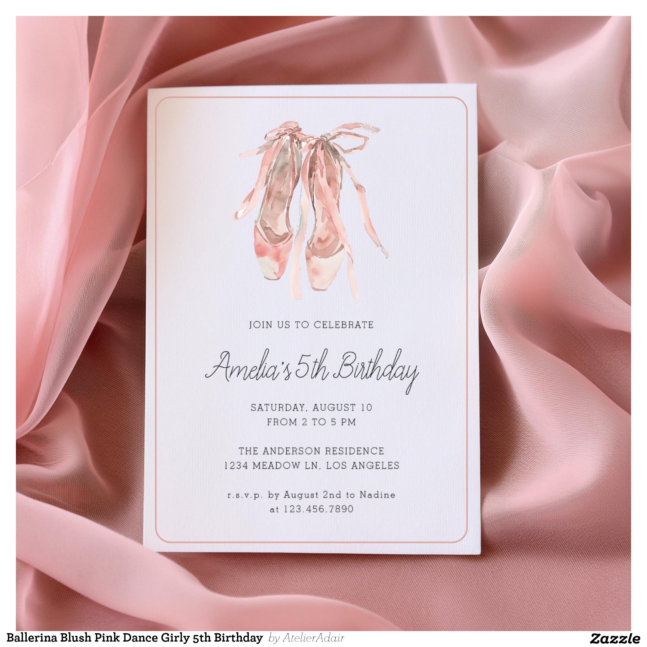 Ballerina Blush Pink Dance Girly 5th Birthday Invitation