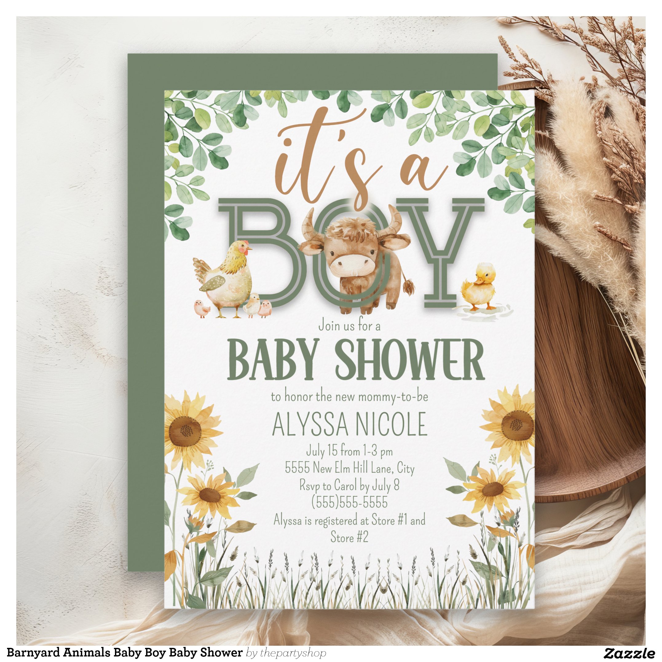 Barnyard Animals Baby Boy Baby Shower Invitation