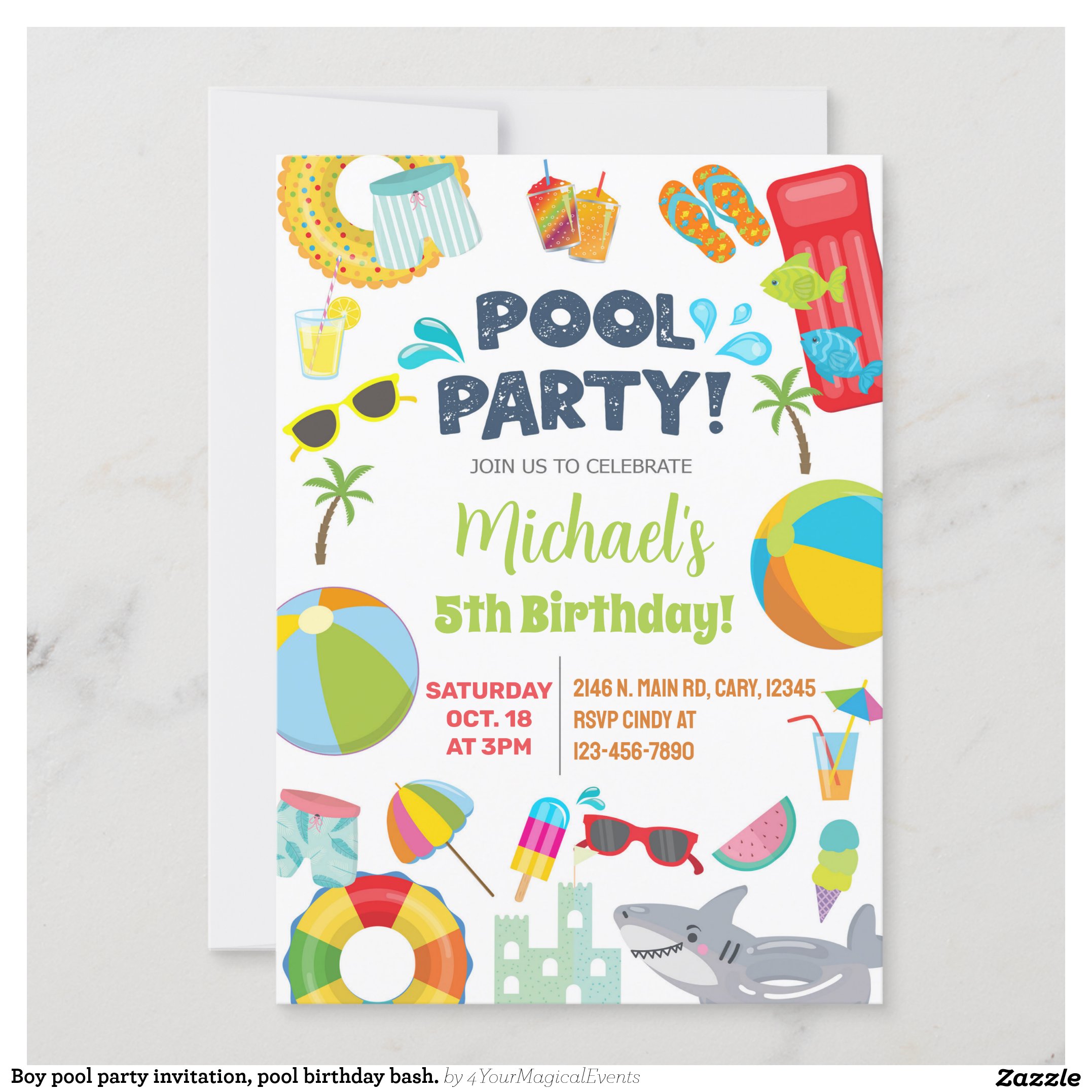 Boy pool party invitation, pool birthday bash. invitation