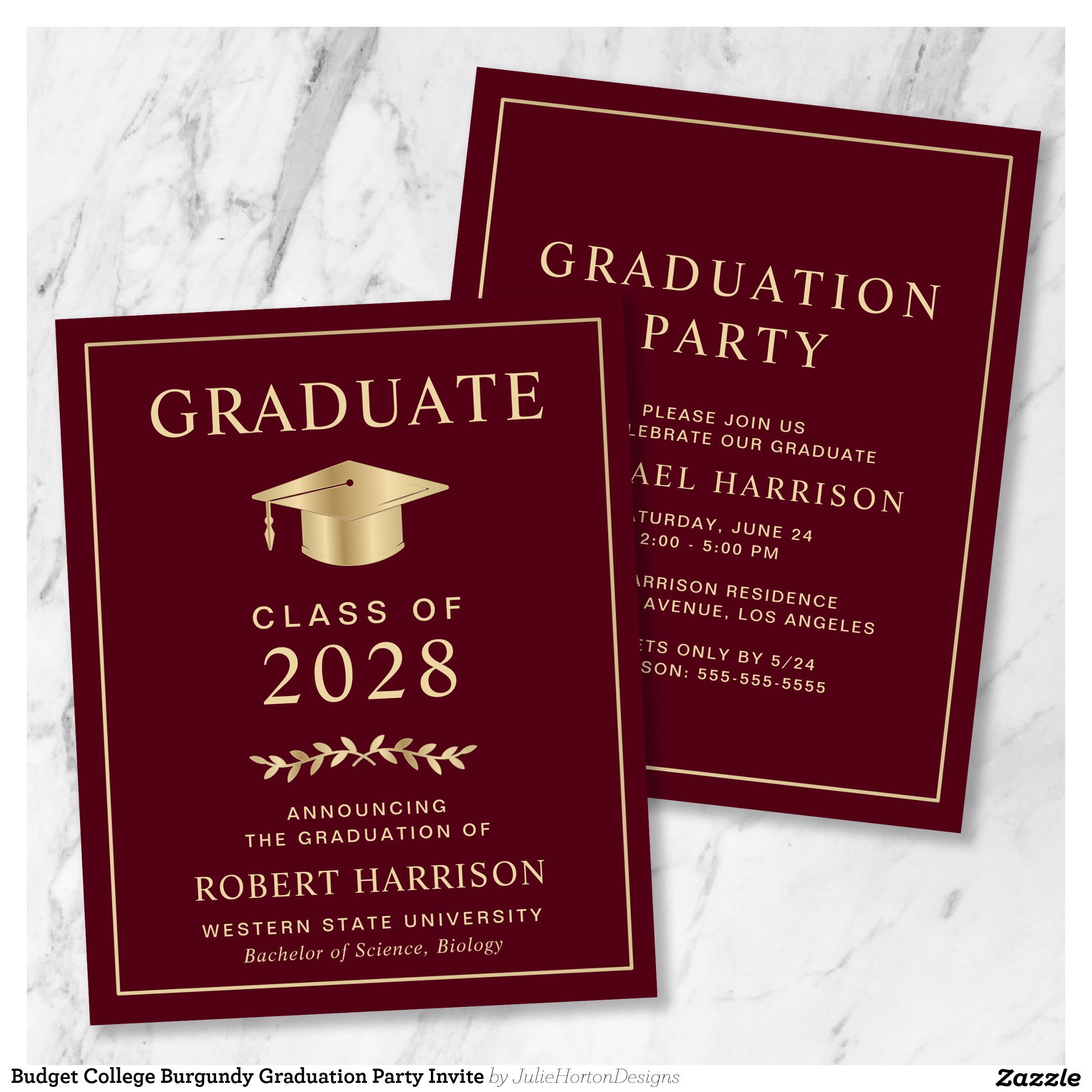 Budget College Burgundy Graduation Party Invite