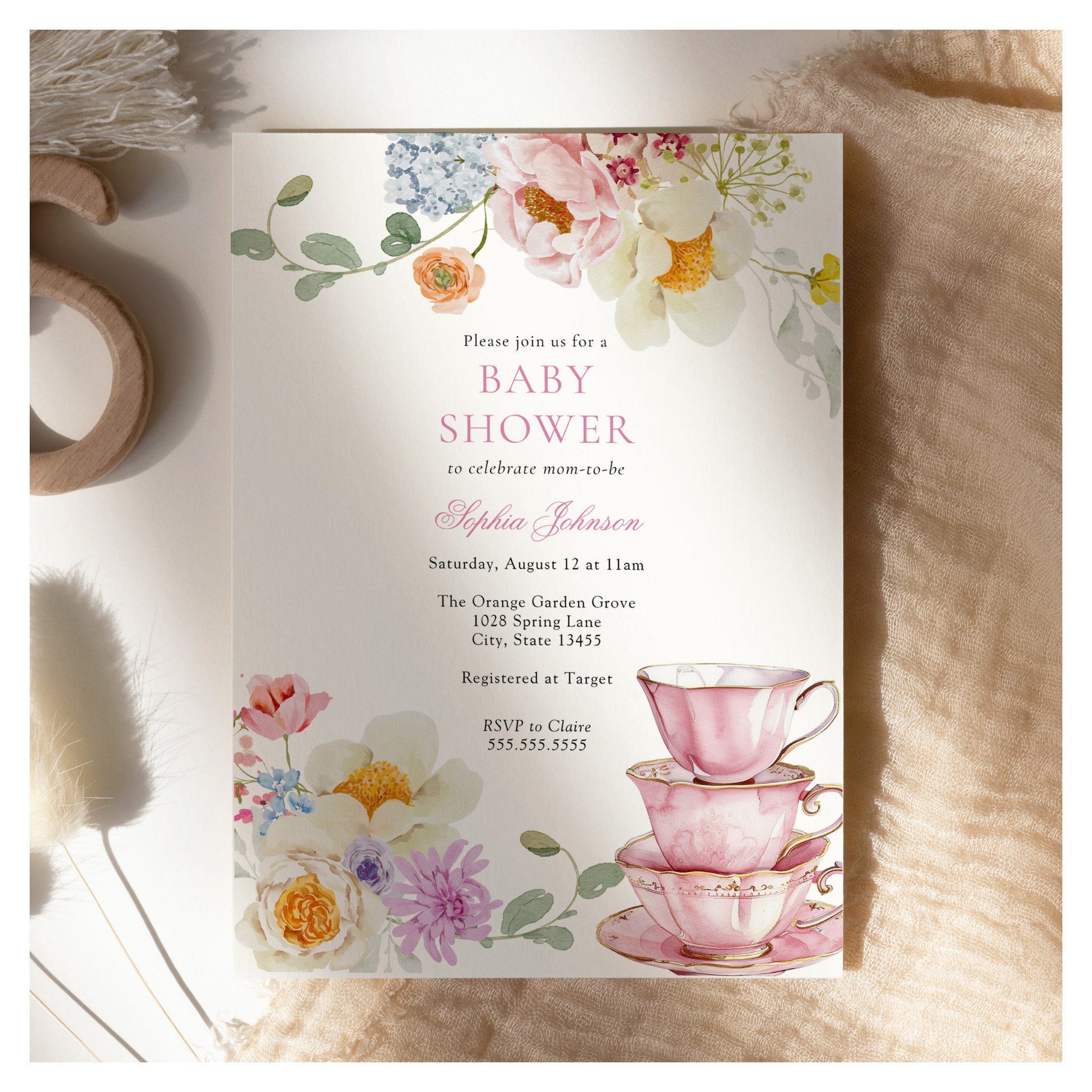 Be the first to review “Tea Wildflower Pink Baby Shower Invitation”
