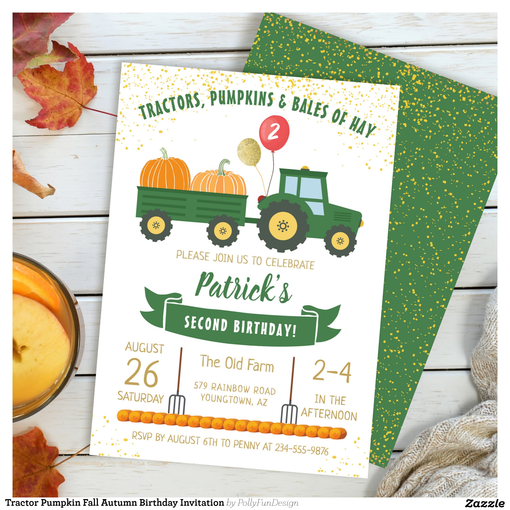 Tractor Pumpkin Fall Autumn Birthday Invitation