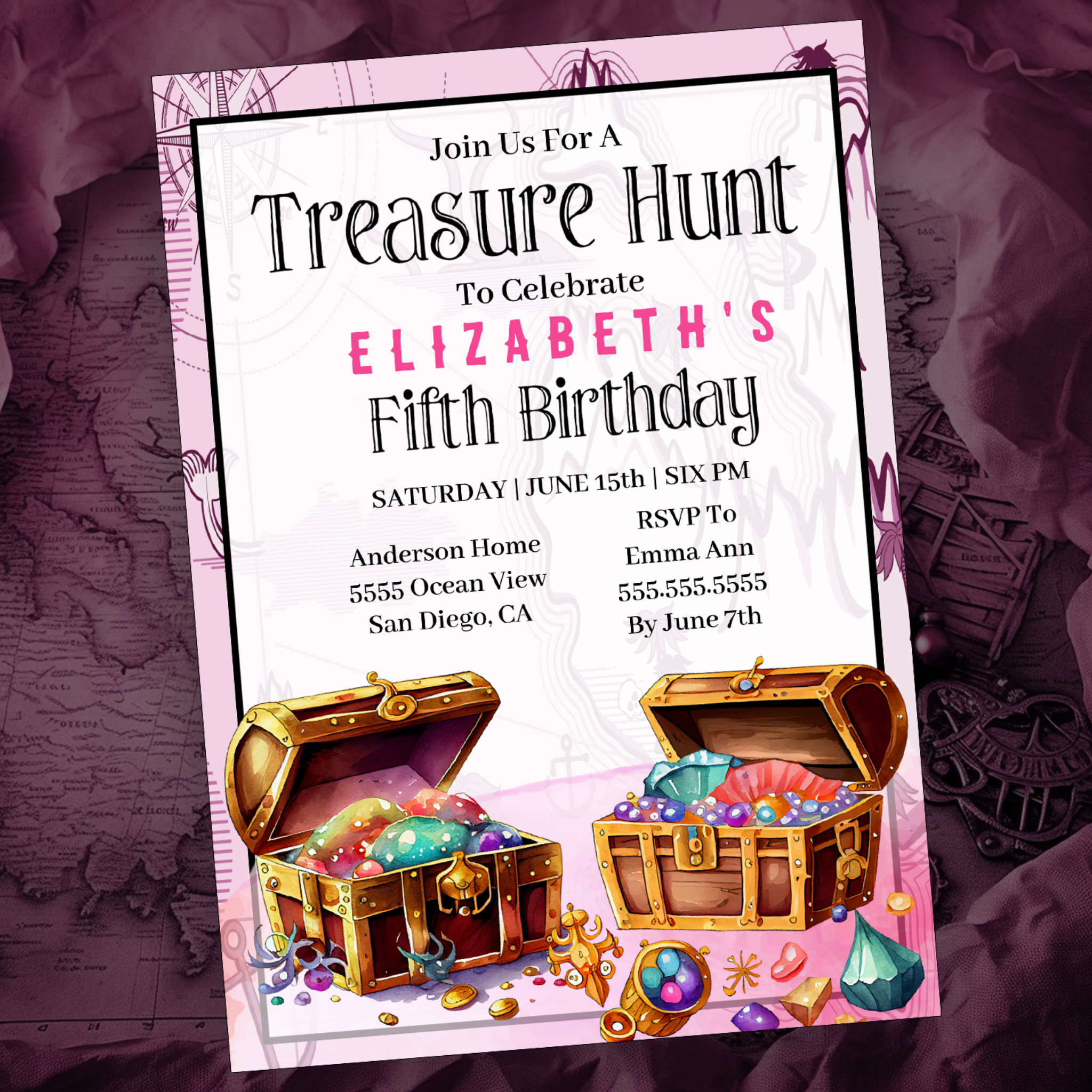 Treasure Hunt Girl’s Fifth Birthday Invitation