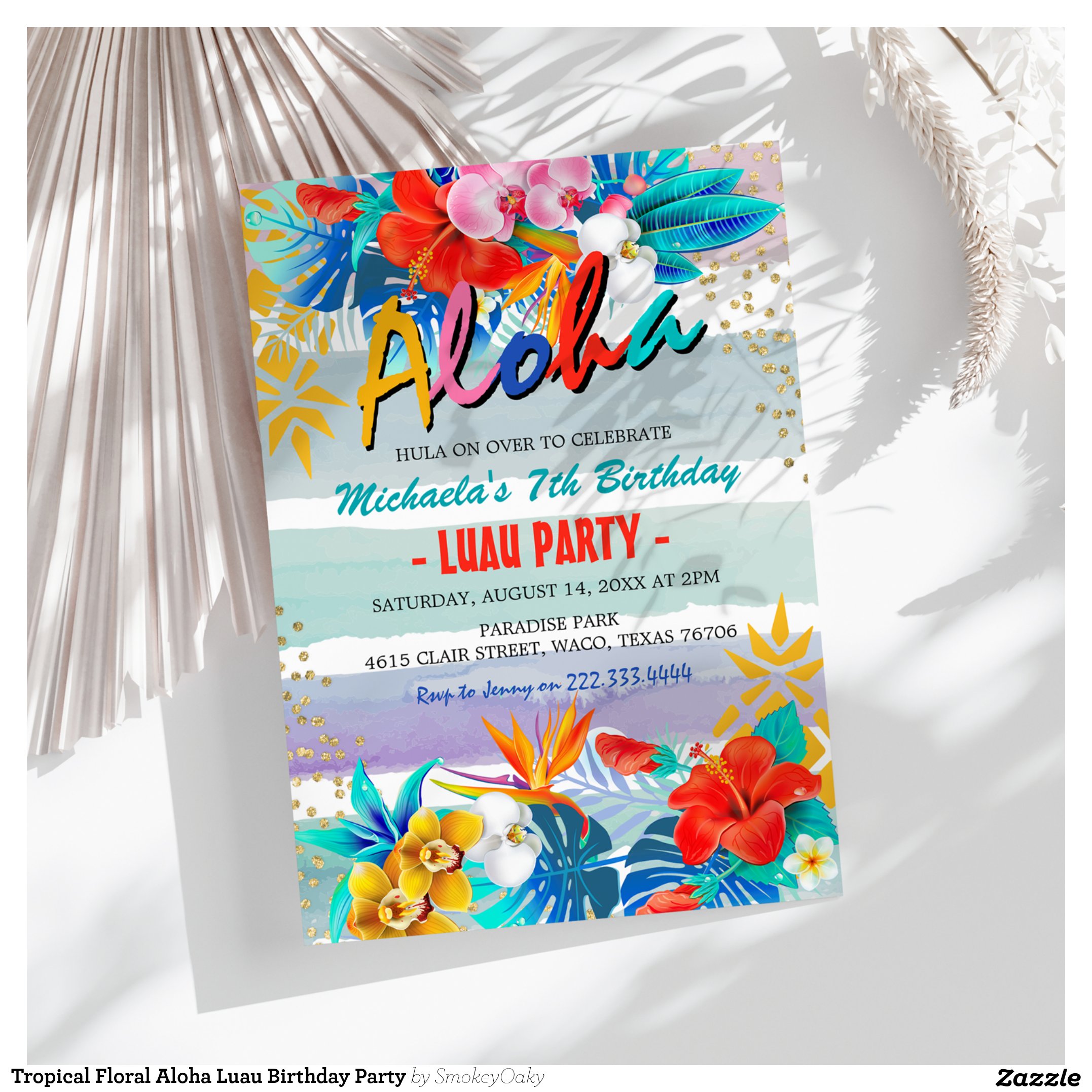 Tropical Floral Aloha Luau Birthday Party Invitation