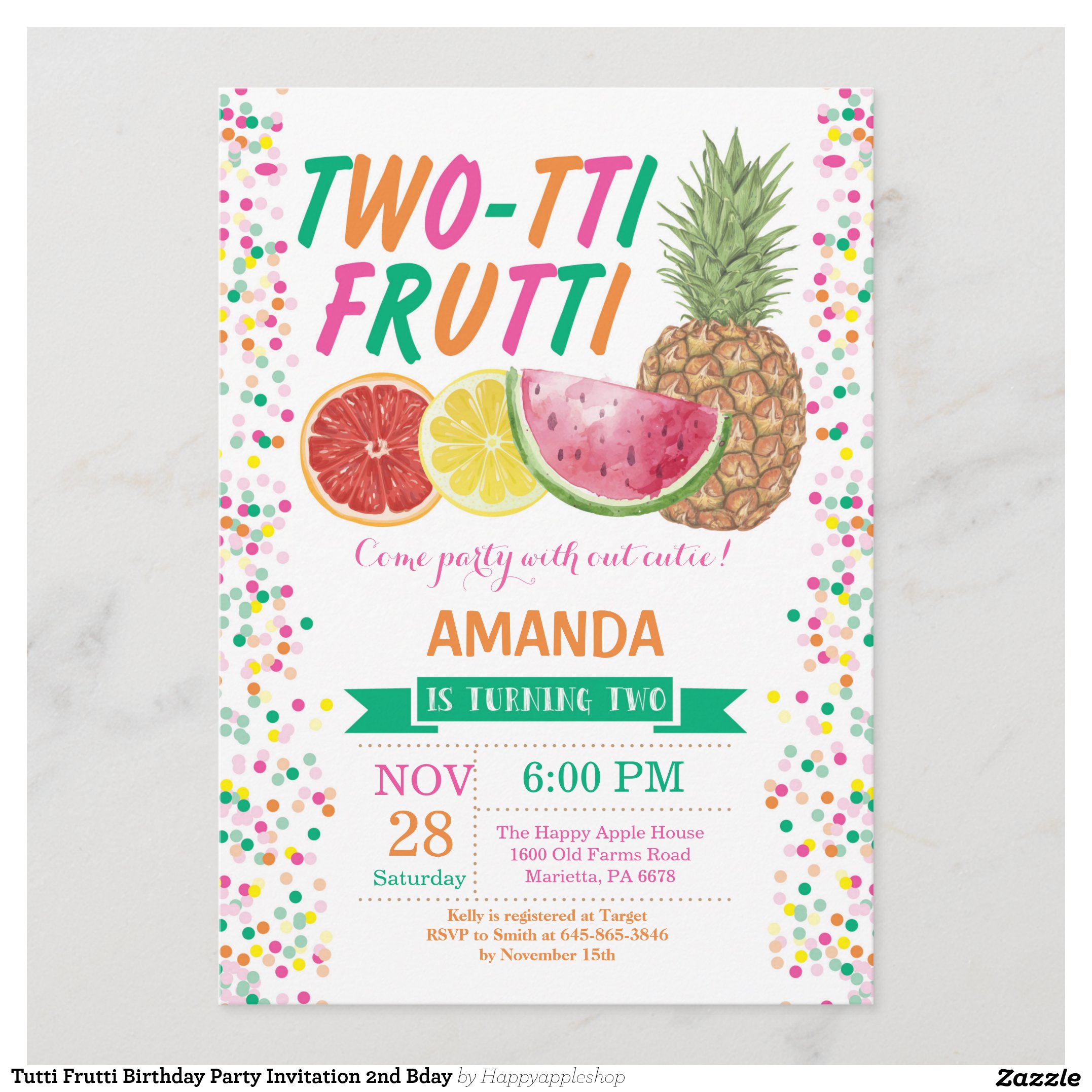Tutti Frutti Birthday Party Invitation 2nd Bday