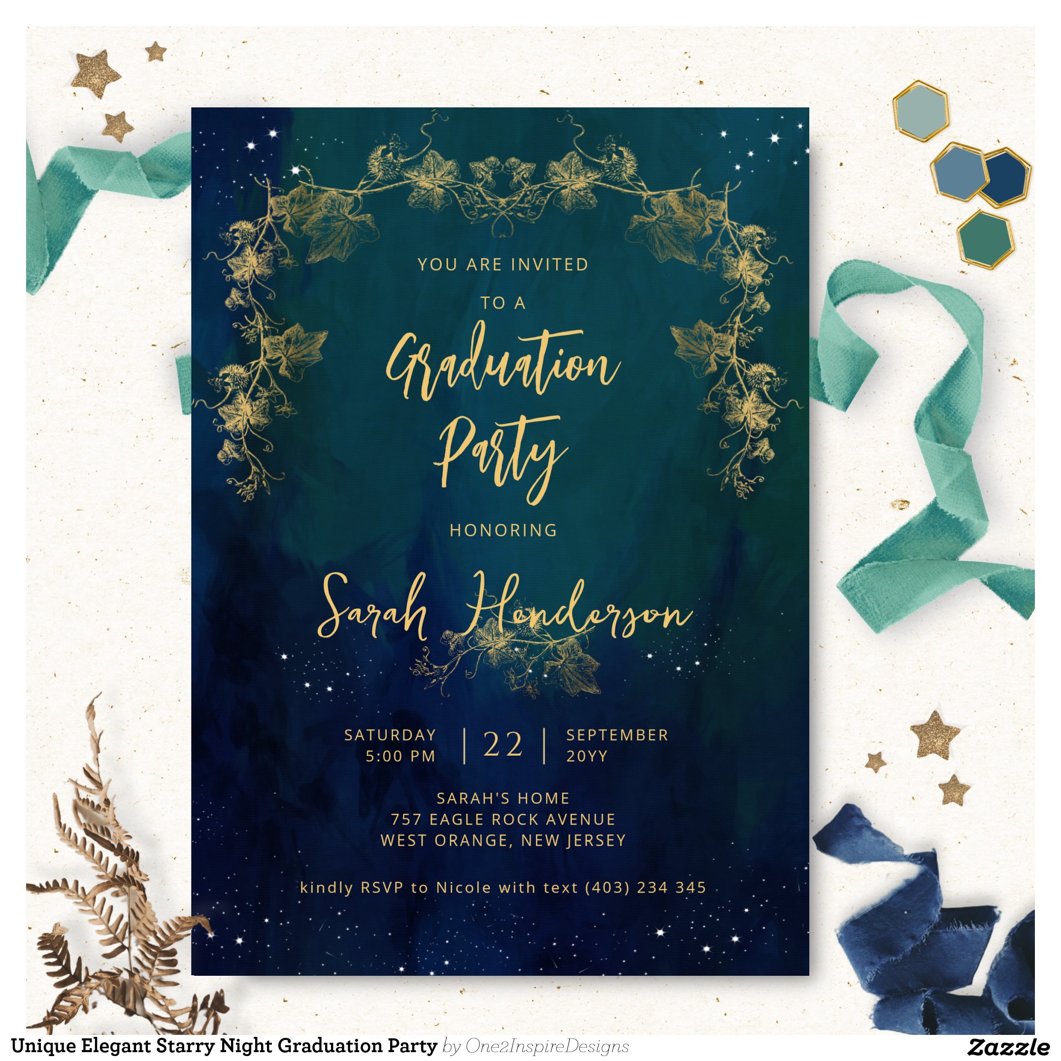 Be the first to review “Unique Elegant Starry Night Graduation Party Invitation”