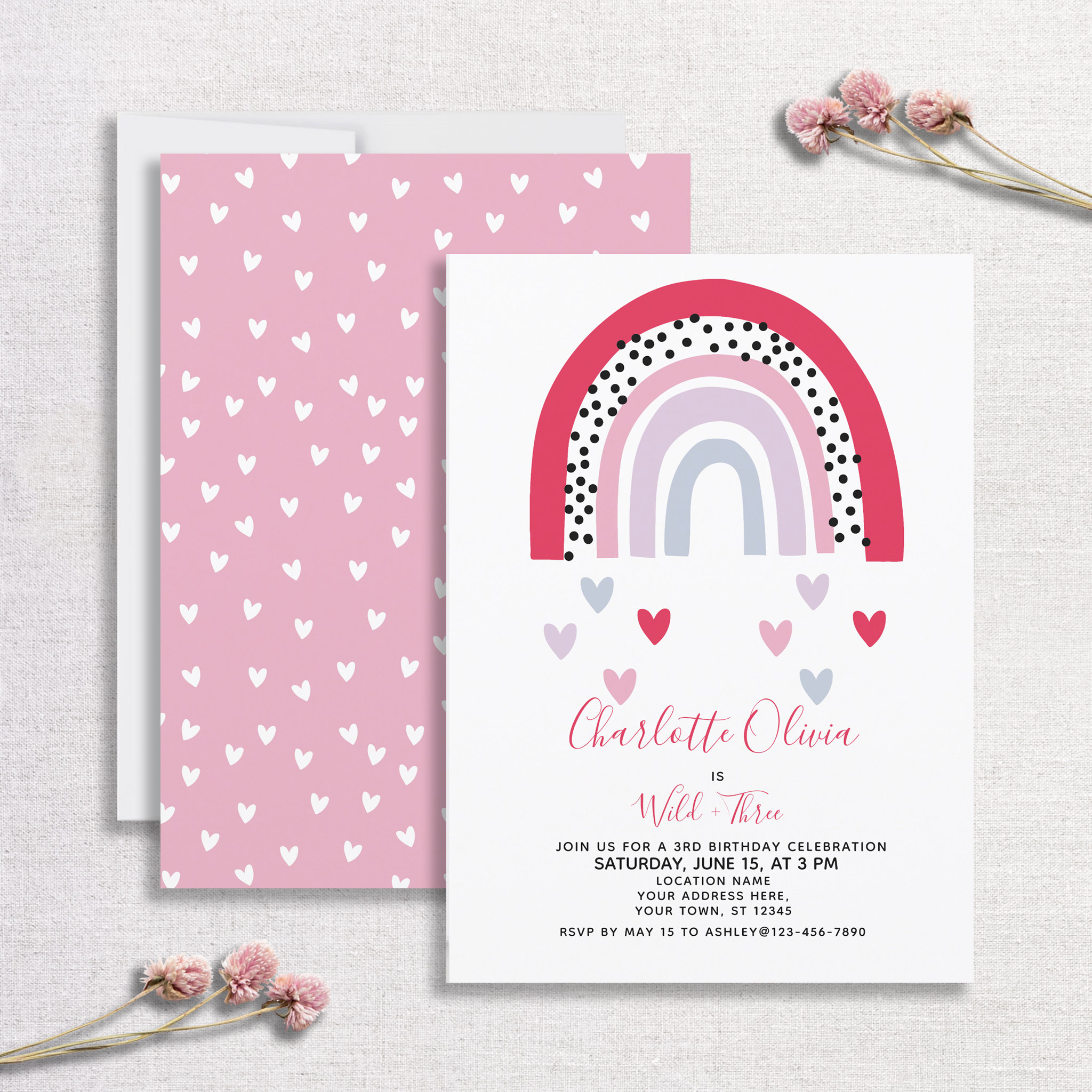 Be the first to review “Wild & Three Pink Rainbow Girl’s Birthday Party Invitation”