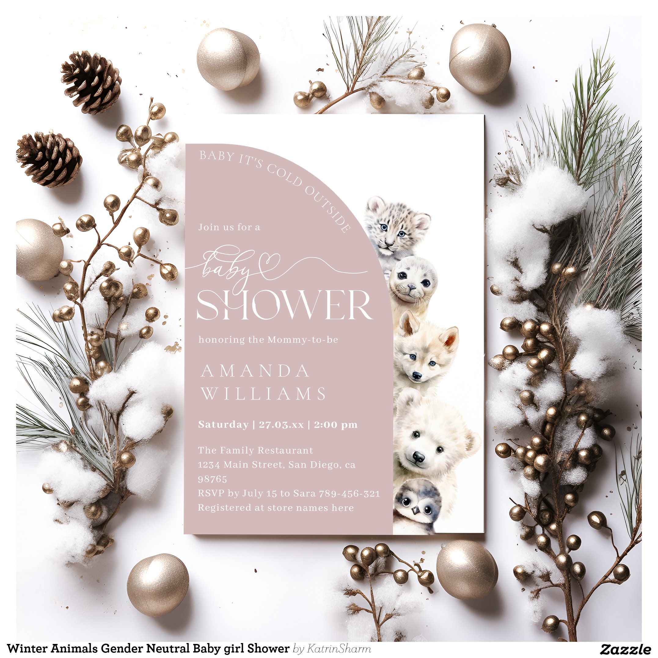 Winter Animals Gender Neutral Baby girl Shower Invitation