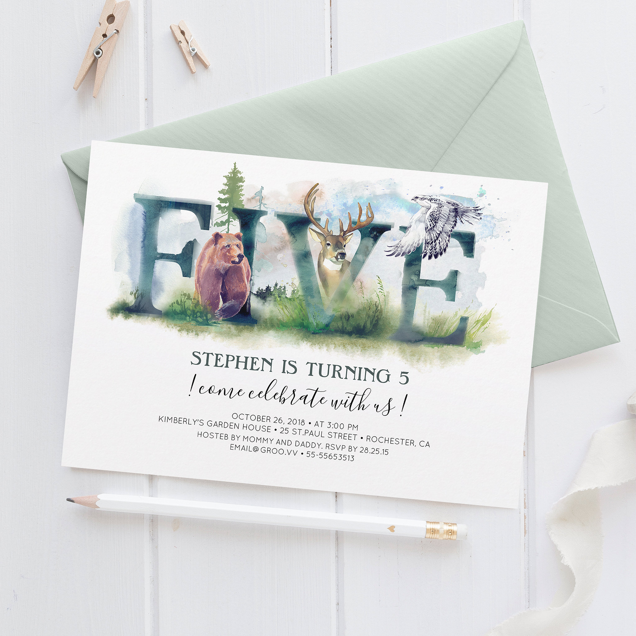Woodland Five – 5th Birthday Invitation
